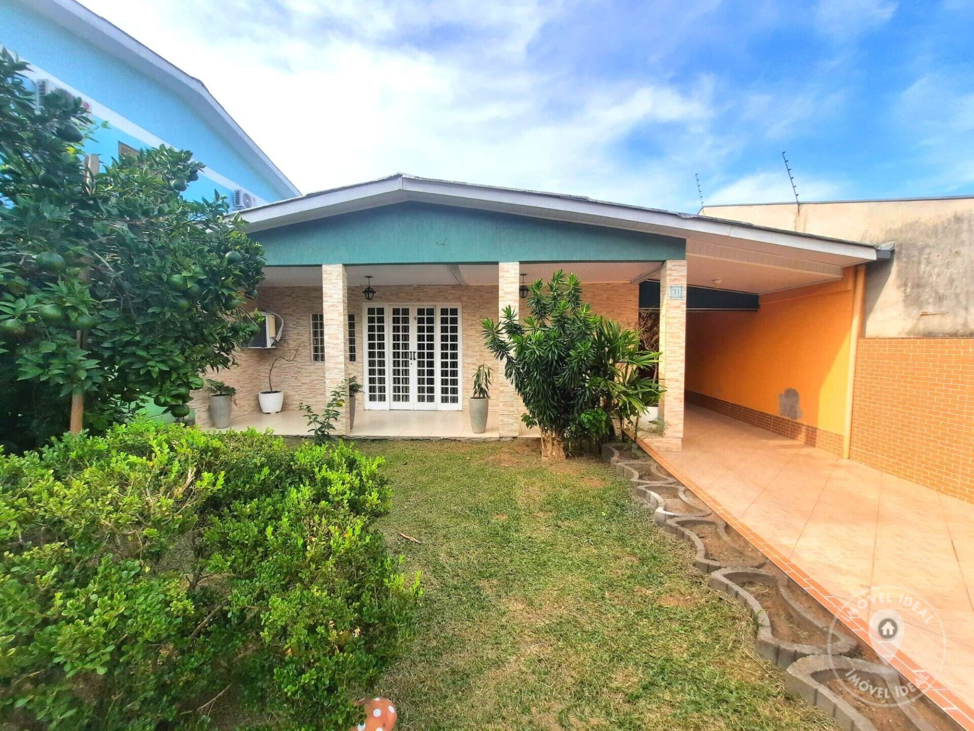 Terreno plano, gramado e bem cuidado, com pátio na frente e atrás, mais um salão grande nos fundos, com área principal com churrasqueira e forno à lenha, outras 3 peças/quartos, mais banheiro social, podendo ser inclusive usado como outra casa.