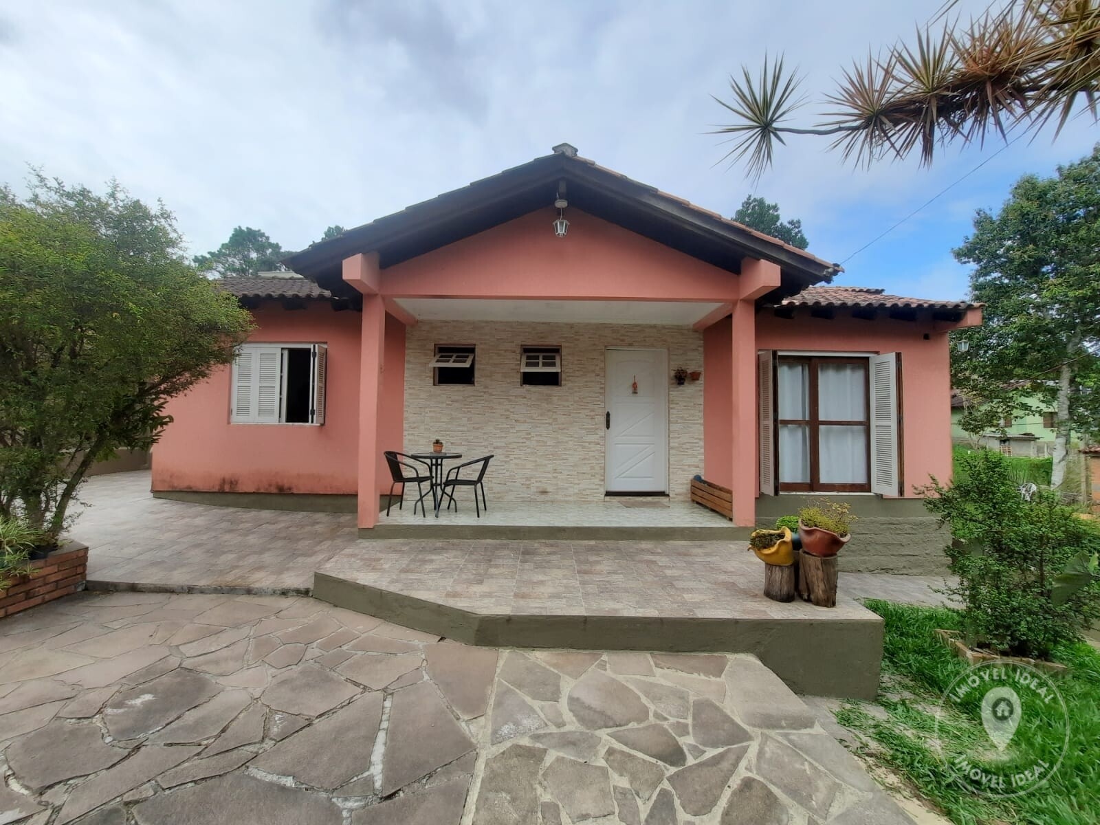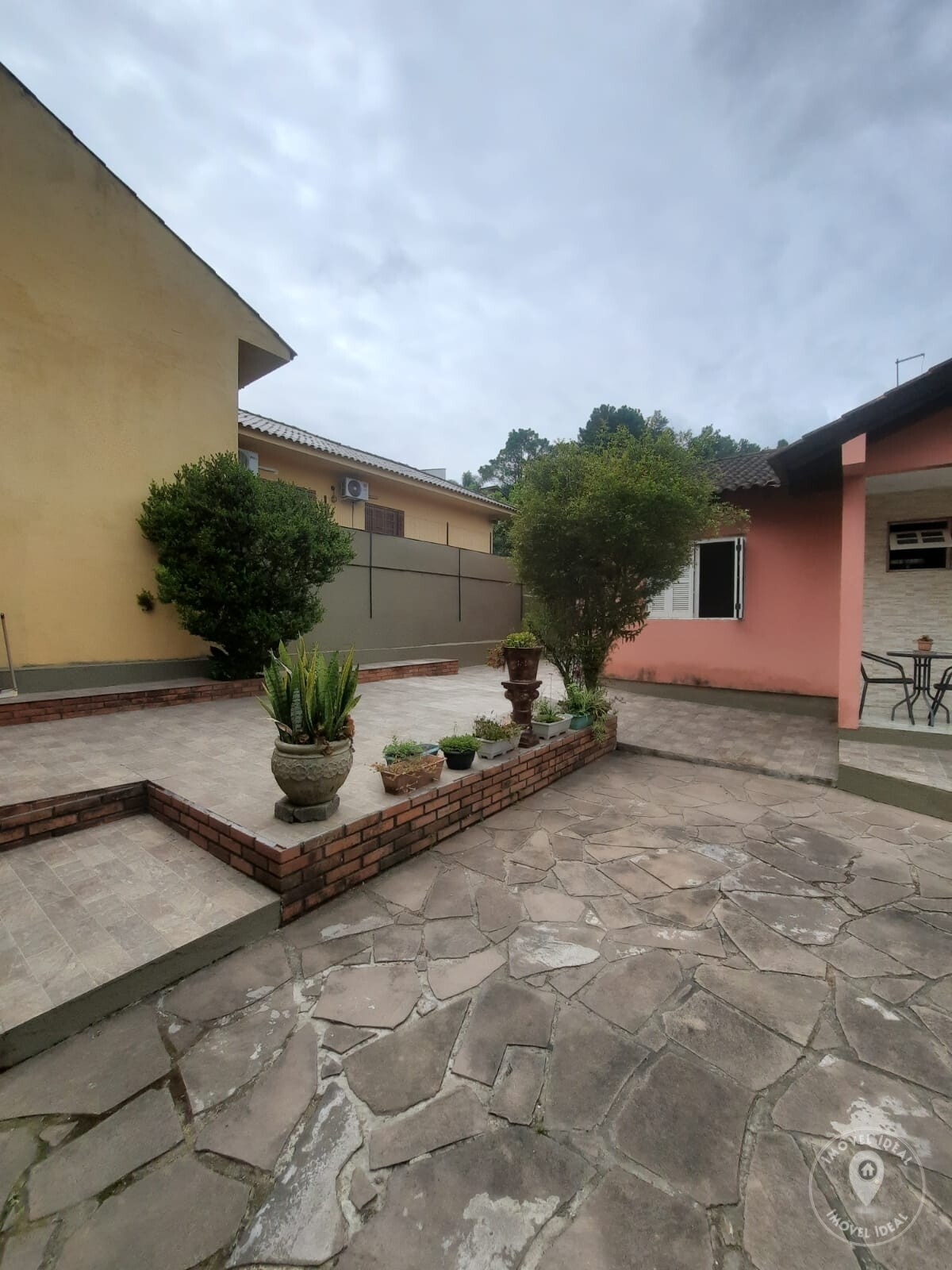 Pátio calçado com cerâmica, imóvel todo murado, portão de acesso por controle, área para quiosque ou pergolado.