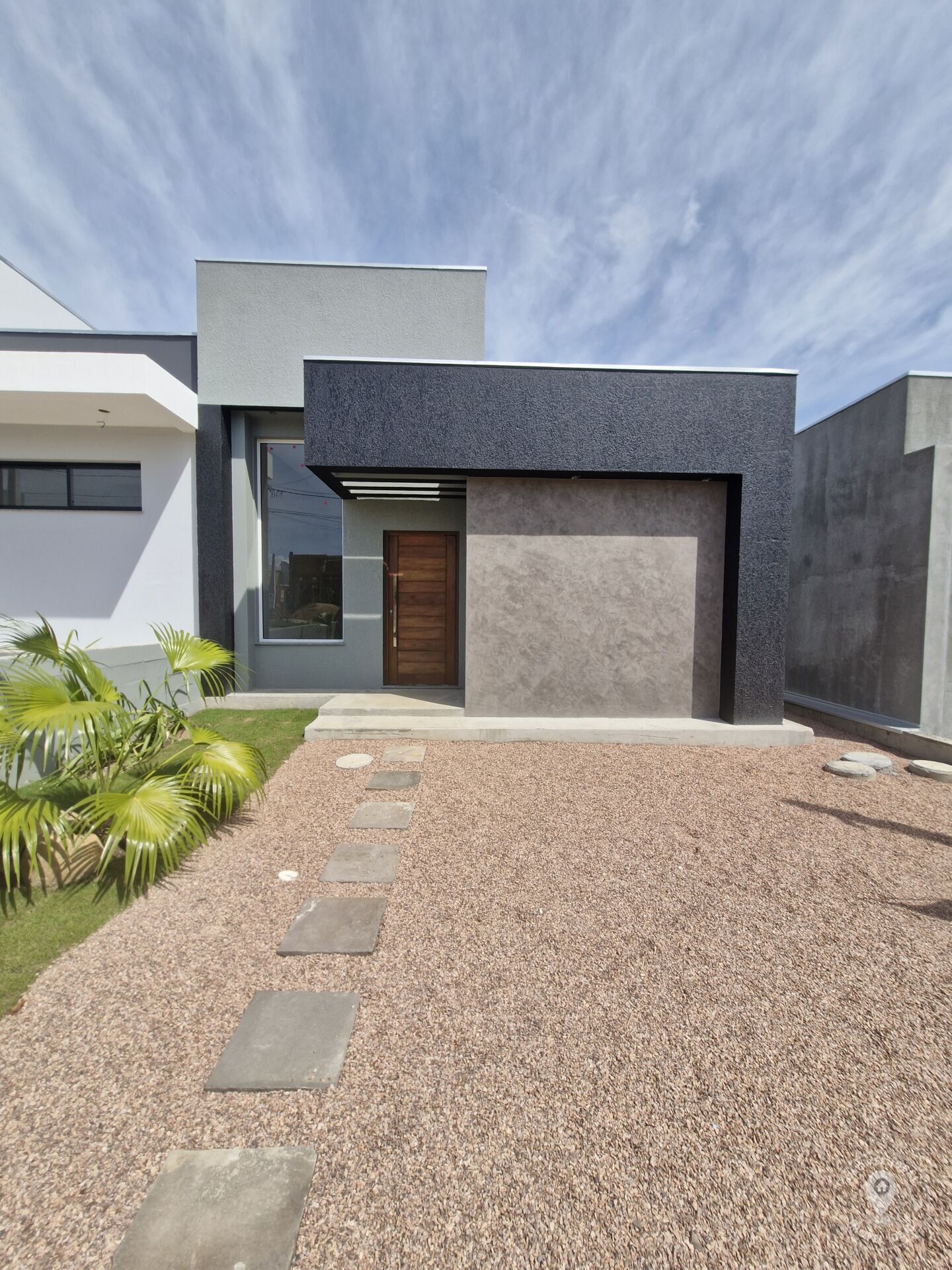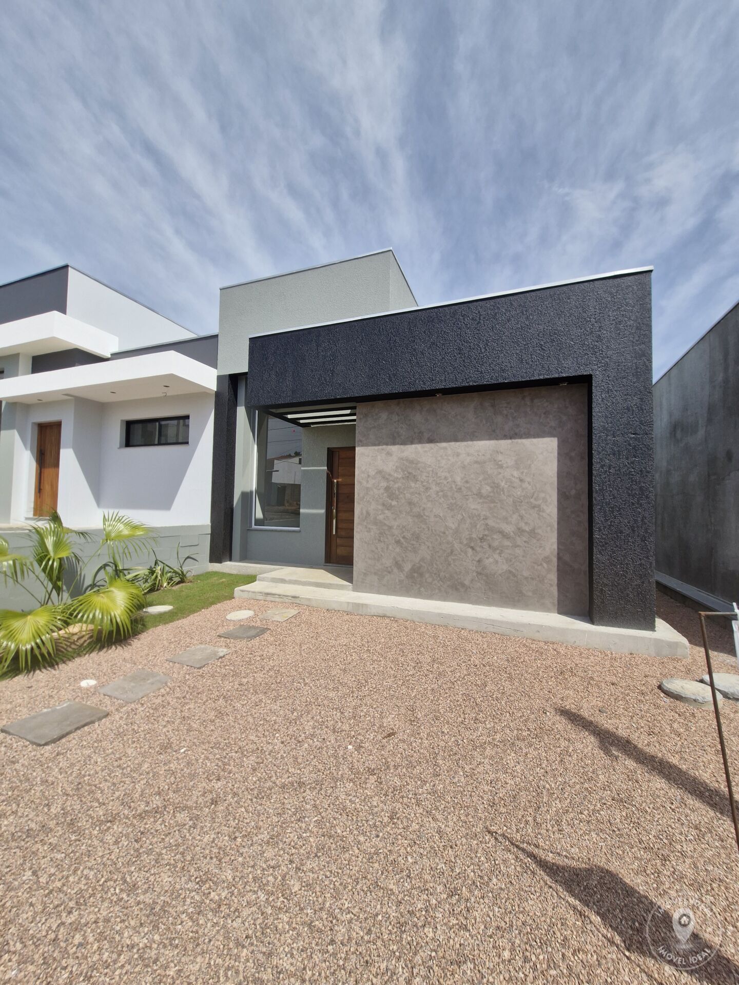 Casa contemporânea, com excelente padrão construtivo, amplos espaços, muita incidência de sol e luz, num terreno plano com área de preservação permanente ao fundo. Pronta para morar, a casa oferece dois dormitórios, sendo uma suíte com piso laminado, banheiro social, sala e cozinha integradas com pé direito duplo, churrasqueira e lavanderia. Trata-se de um imóvel com revestimento em porcelanato, esperas para ar-condicionados nos quartos e áreas sociais, aberturas em alumínio de alta qualidade e vagas para dois carros.